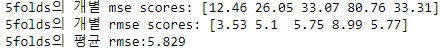 print('degree {0} mse:{1}'.format(degrees[i], np.round(np.mean(scores), 2))) # 교차검증별 mse를 평균냄