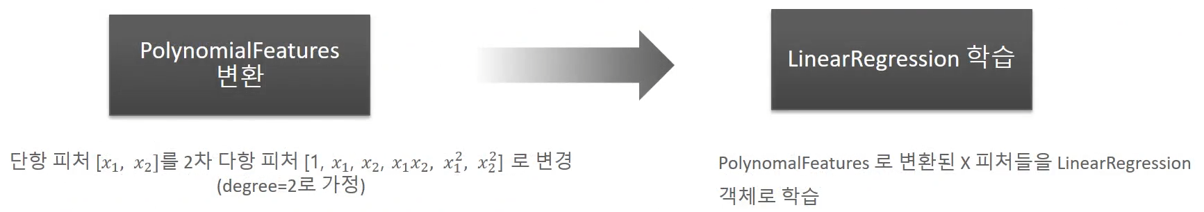 # Pipeline 이용: PolynomialFeatures 변환, LinearRegression 적용을 순차적으로 결합