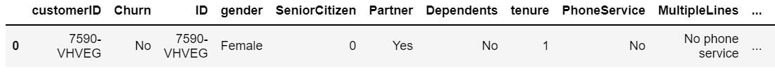 df2.rename({"customerID":"ID"}, axis=1, inplace=True) # 실습을 위해 df2의 customerID 컬럼명을 ID로 변환