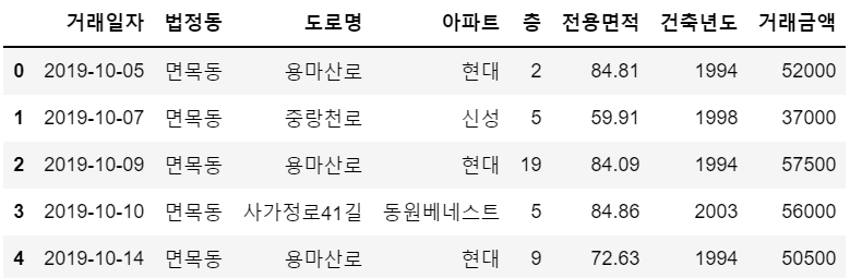 df1 = pd.read_csv("2019년_서울_아파트매매_실거래가.csv", encoding='cp949') # 데이터에 한글이 포함되기 때문에 'cp949'
