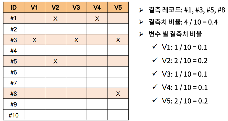 결측치 비율: 결측 레코드 수 / 전체 레코드 개수