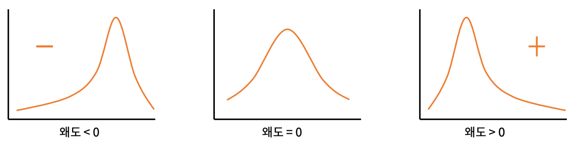 변수 치우침을 확인하기 가장 적절한 척도로는 왜도(skewness)가 있다. 왜도는 분포의 비대칭도를 나타내는 통계량으로, 왜도 값에 따른 분포는 다음과 같다.