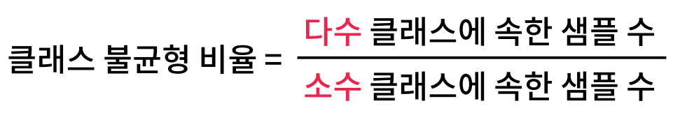 클래스 불균형 비율이 일반적으로 9 이상이면 편향된 모델이 학습될 가능성이 있다.