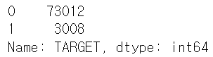 print('만족 비율:', cust_df['TARGET'].value_counts()[0] / cust_df.shape[0])