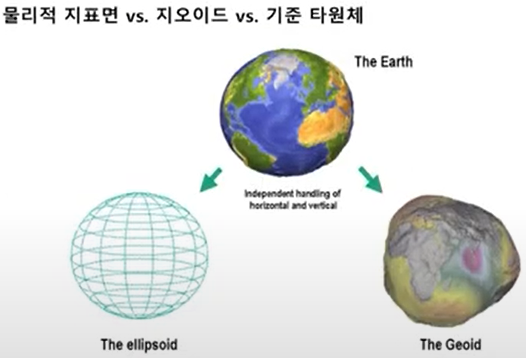 1. 물리적 지표면(Earth surface): 산, 건물 등과 같이 구성된 복잡한 지구를 수학적으로 해석하기 어려움
