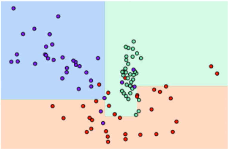데이터 세트에 피처가 있고 이러한 피처가 결합해 규칙 조건을 만들 때마다 규칙 노드가 만들어진다. 하지만 많은 규칙이 있다는 것은 곧 분류를 결정하는 방식이 더욱 복잡해진다는 얘기이고, 이는 곧 과적합으로 이어지기 쉽다.