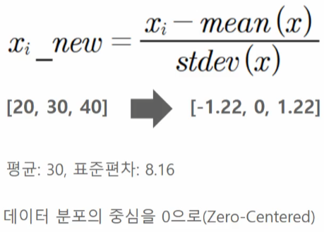 표준화는 데이터의 피처 각각이 평균이 0이고 분산이 1인 가우시안 정규분포를 가진 값으로 변환하는 것