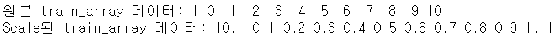 print('Scale된 test_array 데이터:', np.round(test_scaled.reshape(-1), 2))