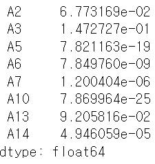 # 각각을 Series로 변환(value: pvalue, index: column name)